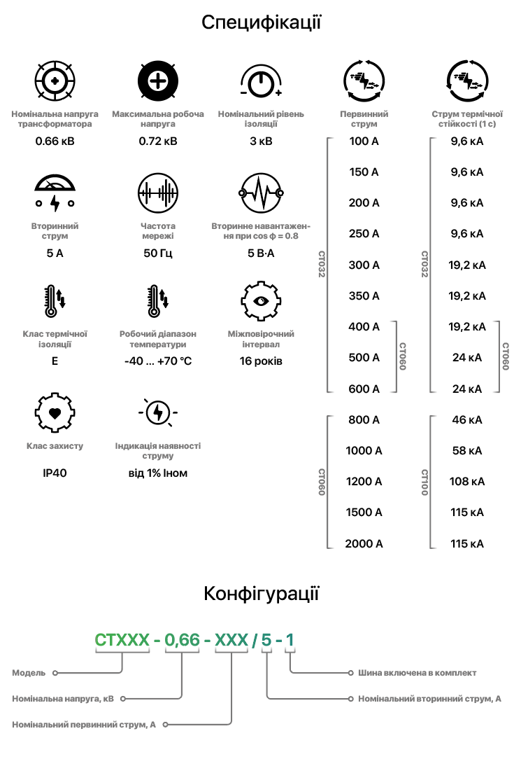 - Первинний струм 100 - 2000 А